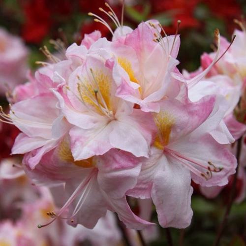 Саженцы азалии Сатоми характеризуются средним ростом – достигая высоты 1,5 метра и ширины около 1,2 метра. У них пышная, раскидистая и рыхлая крона, образующая уютные зеленые уголки в вашем саду. Азалия предпочитает рассеянное освещение или полутень, что делает ее идеальной для создания тенистых ландшафтов.