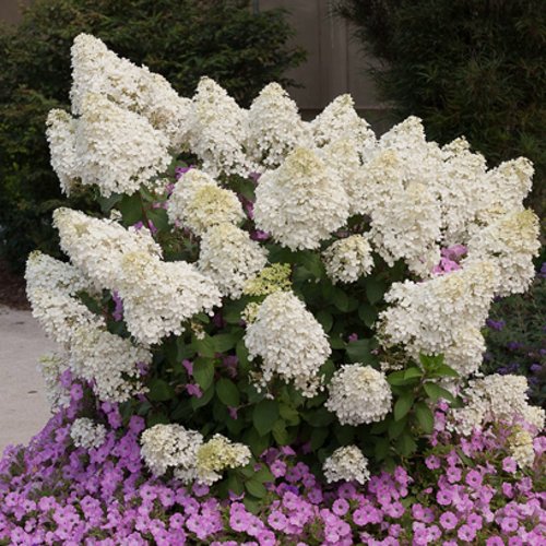 Соцветия расположены на концах побегов и имеют форму пирамиды. Цветки достаточно крупные и белоснежные, но при добавлении в почву соединений железа или алюминия, могут приобрести желтоватые, нежно-лимонные или светло-розовые оттенки. Изменение цвета во время вегетации и способность изменять расцветку в зависимости от типа почвы делают этот сорт особенно привлекательным.