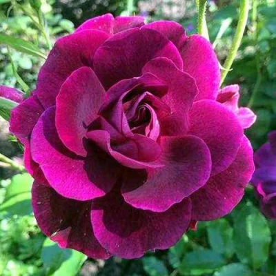 Цветки этой розы привлекают внимание своим насыщенным, темным оттенком. Основная окраска описана как фиолетовая, но в реальности она представляет собой густой сливово-пурпурный цвет, который становится еще интригующее благодаря дымчато-сиреневой изнанке лепестков. Каждый махровый бутон, состоящий из 30-40 лепестков, раскрывается в изящную чашевидную форму диаметром 7-8 сантиметров. Цветки собраны в устойчивые малоцветковые соцветия по 3-5 штук на стебле. Их украшает приятный, ненавязчивый аромат средней интенсивности, в котором угадываются легкие медовые тона с пряной ноткой гвоздики.
